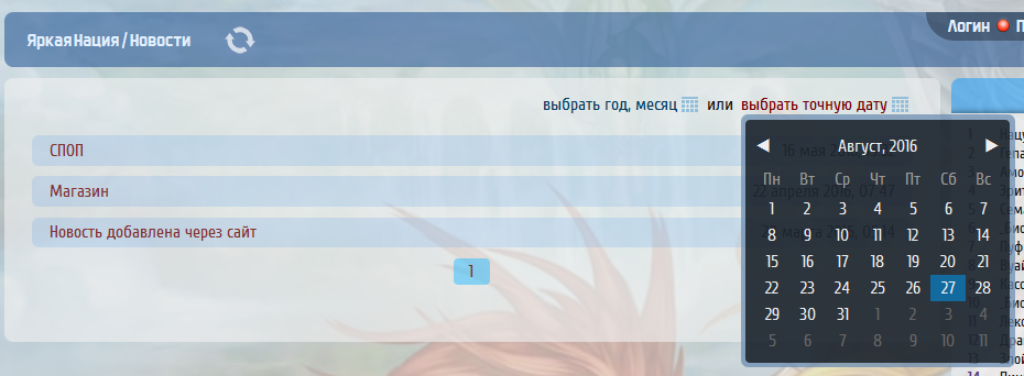 - Выбор месяца или даты