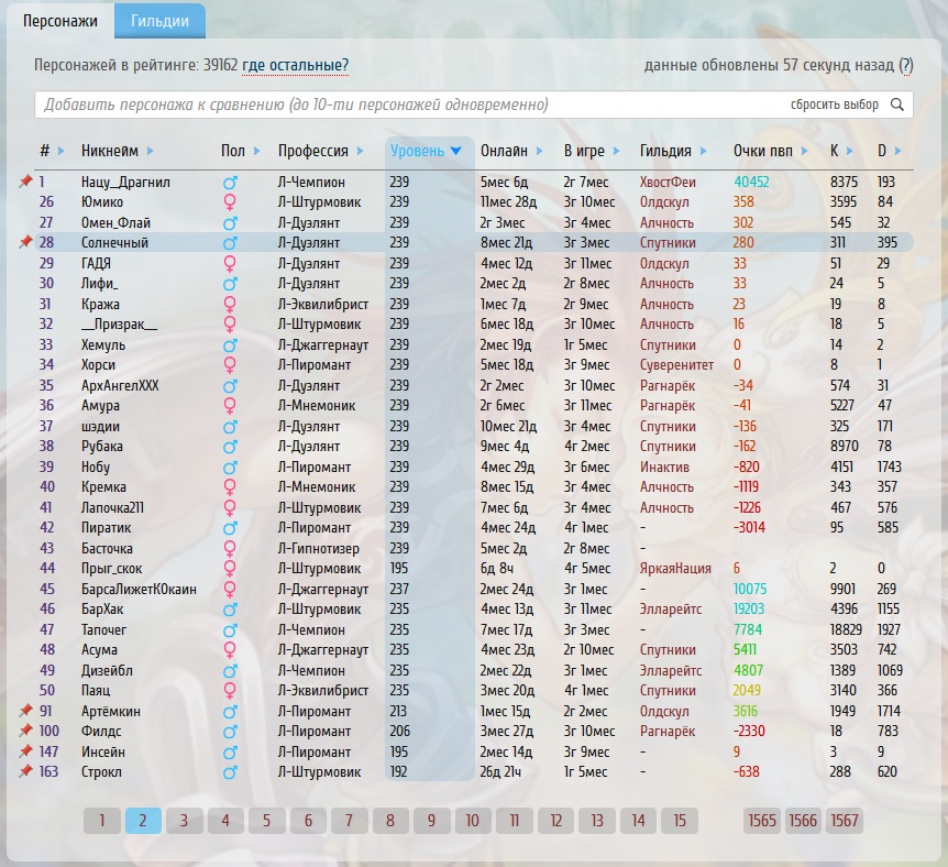 - Отображение всех персонажей/гильдий, а не топ-100