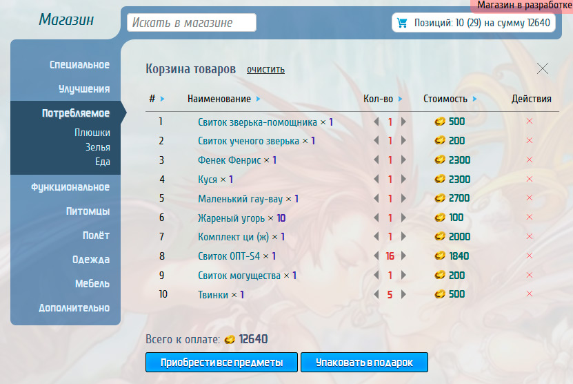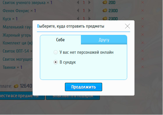 - Офлайн покупка (в сундук)