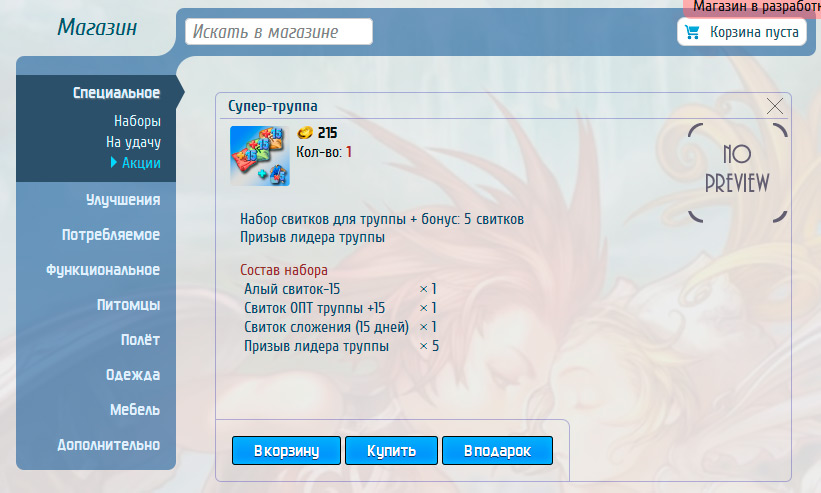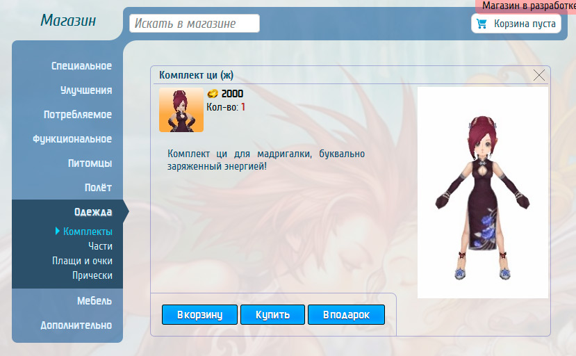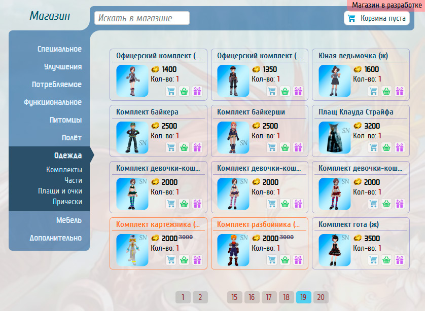 - Наличие корзины покупок