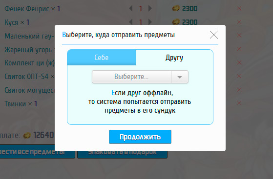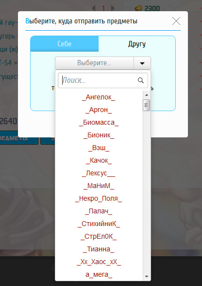 - Отображение полного списка друзей и поиск по нему при отправке предметов в подарок