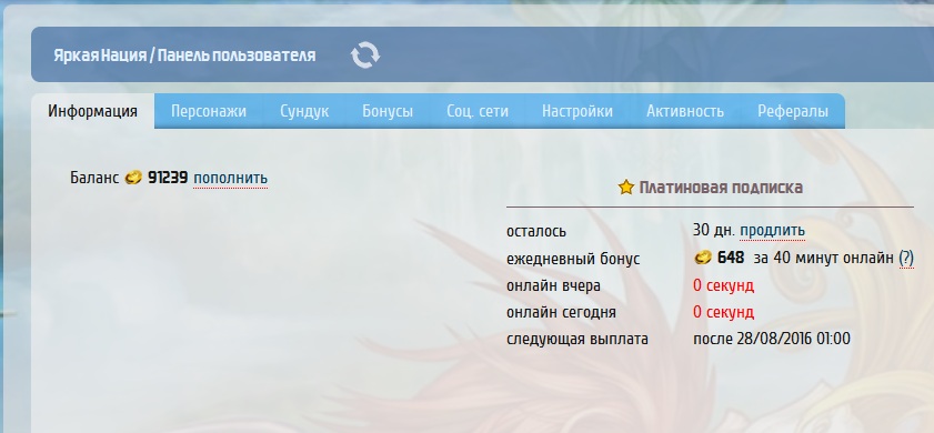 - Наличие сундука в панели пользователя